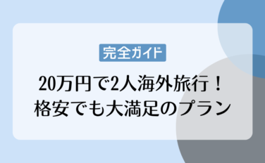 海外旅行情報 【2025年版】20万円で2人海外旅行!格安でも大満足のプラン完全ガイド 20万円で2人の海外旅行は十分可能!ソウル・台北なら3-4泊、バンコク・マニラなら4-5泊で大満足。航空券・ホテル・eSIM・保険の節約術から具体的な予算内訳まで徹底解説。初めての海外旅行でも安心の完全ガイド。 海外旅行情報