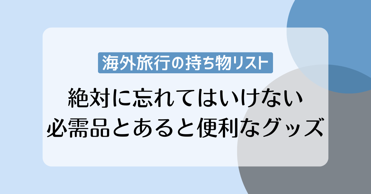 この記事では、海外旅行の持ち物を完全網羅。以下の内容を詳しく解説します。