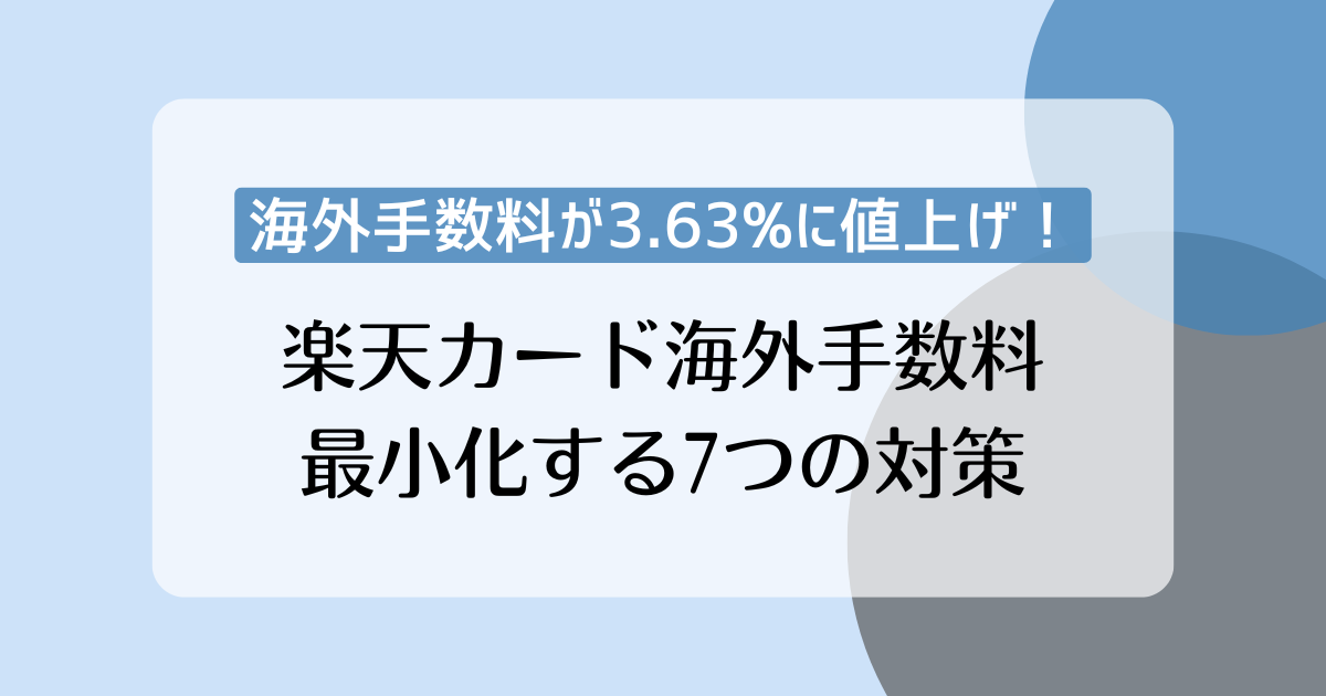 楽天カードの海外事務手数料が2025年3月より全ブランド一律3.63%に引き上げられました(変更前2.20%)。1.43%の大幅値上げとなるため、対策が必要です。