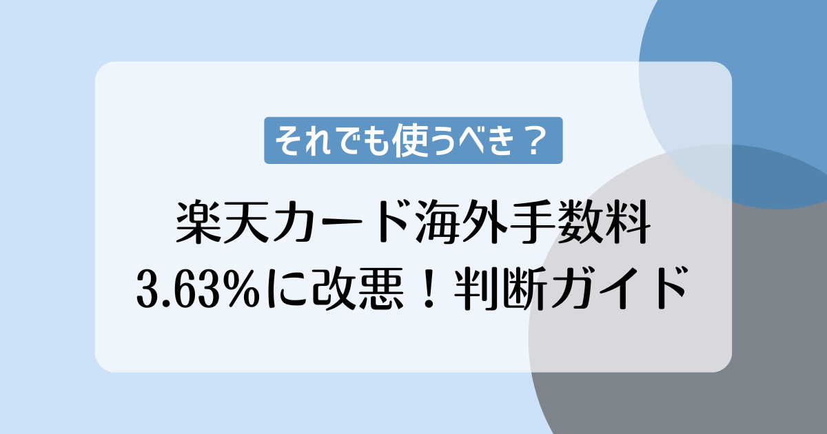 2025年3月、楽天カードの海外事務手数料が2.20%から3.63%に大幅引き上げ。さらにVisa・Mastercardブランドはポイント還元率も半減(1%→0.5%)という二重の改悪が実施されました。