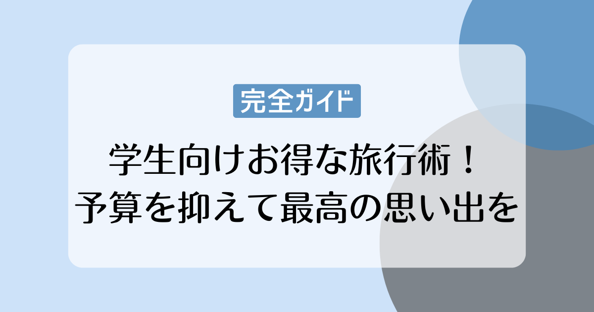 学生時代の旅行は、かけがえのない思い出になります。しかし、限られた予算の中で充実した旅を実現するのは簡単ではありません。この記事では、学生の皆さんが賢く節約しながら、最高の旅行体験を手に入れるための実践的なテクニックを徹底解説します!