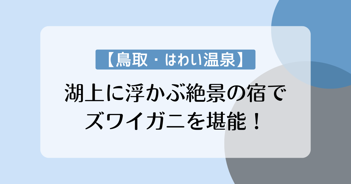 「千年亭」は、東郷湖に浮かぶような絶景と、ズワイガニを堪能できる温泉宿でした。